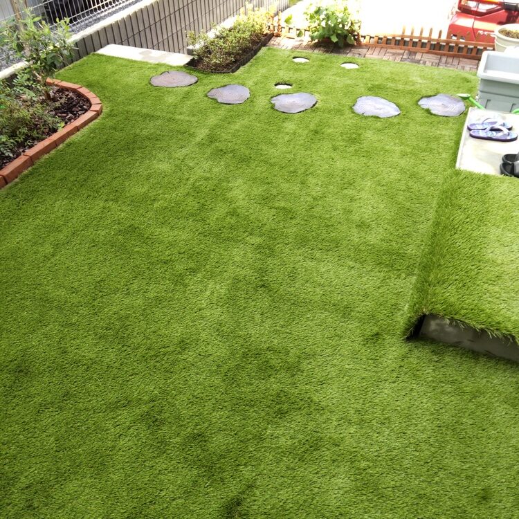 庭に敷けば子供やペットが走り周り、ゴロゴロ転がり回ります。