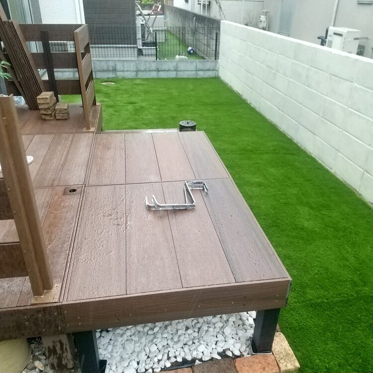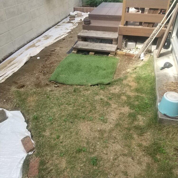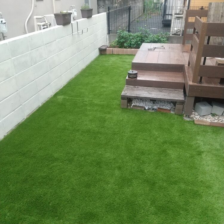 お手入れ大変とのことで人工芝への張り替えをご依頼いただきました。
